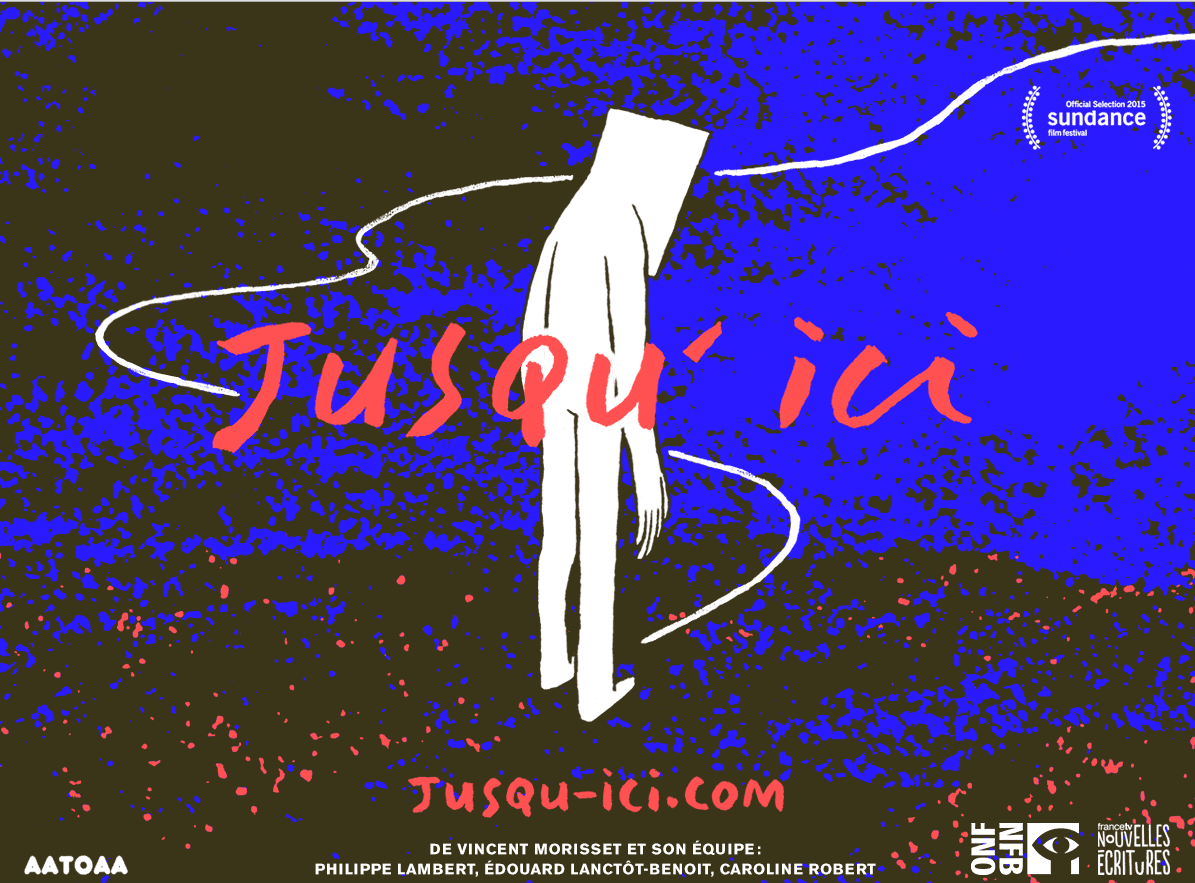 Jusqu'ici est une expérience interactive pour les humains de 5 à 105 ans. Tu t'y perdras peut-être pendant six minutes, peut-être pour toujours. Jusqu'ici est fait pour ton navigateur web. Ou des lunettes Oculus. Il est comme l’écureuil gris qui n’a peur de rien, sur sa branche. Imaginé par Vincent Morisset, Caroline Robert et Édouard Lanctôt-Benoit du studio AATOAA, les créateurs visionnaires derrière BLA BLA et Just a Reflektor. Avec une hypnotique bande sonore signée Philippe Lambert. Produit par l'ONF en coproduction avec France Télévisions, c’est un jeu, une berceuse, une alarme, un brusque réveil devant les aléas du quotidien. À une époque où on peut tant voir en voyant si peu, il te rappellera tout ce qui se cache devant toi, en toi, jusqu’ici.